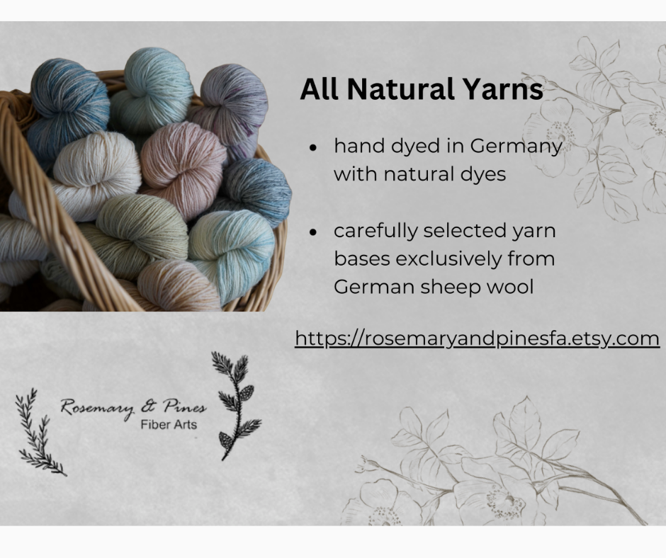 Etsy Shop (naturally dyed yarns): https://www.etsy.com/shop/RosemaryAndPinesFA