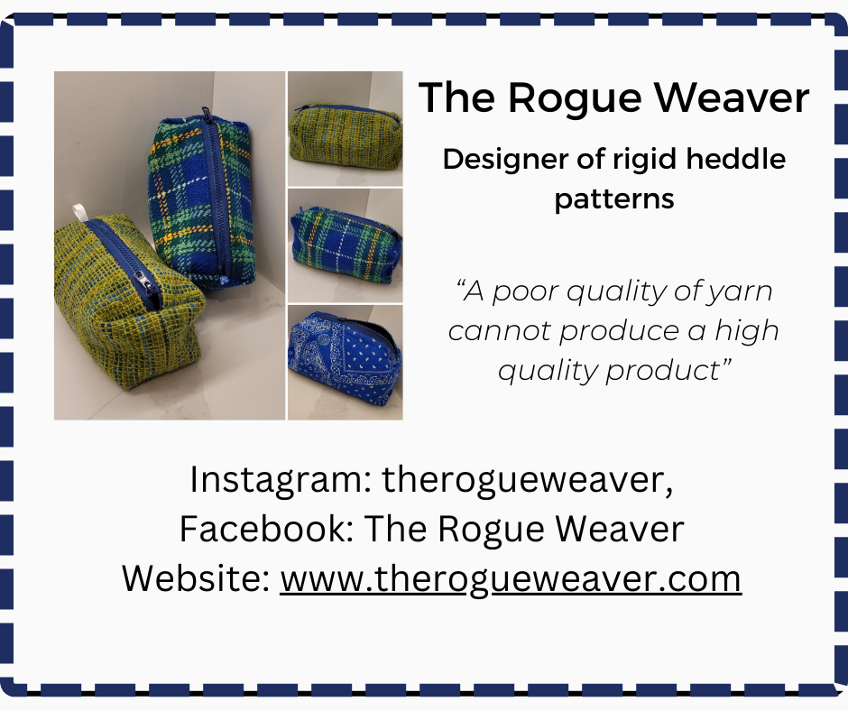 Tammy Bast, is known on social media as The Rogue Weaver. She has been weaving for 7 years. She works at Gaspereau Valley Fibres, a wonderful yarn store in Nova Scotia Canada. She also designs patterns for rigid heddle weavers and teachers classes.